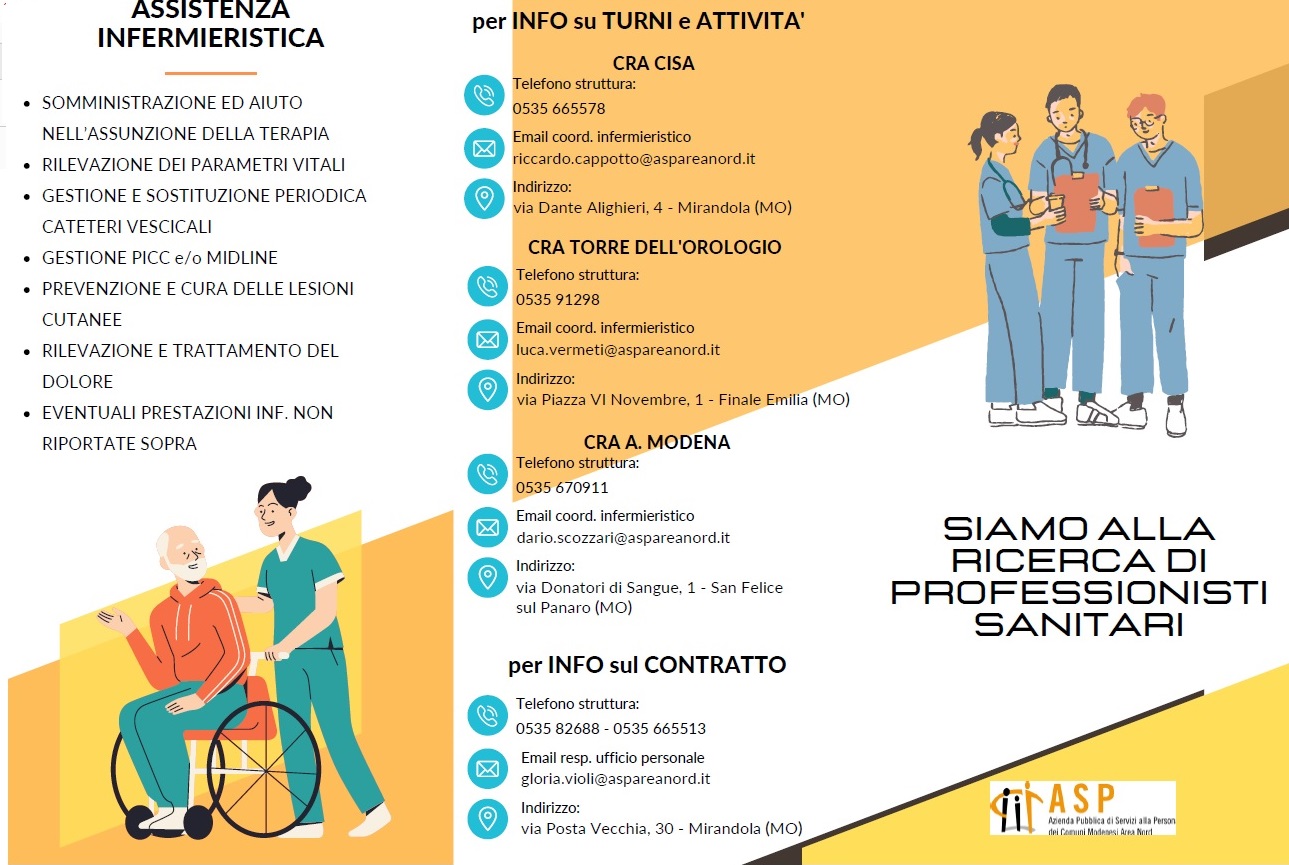 L’Azienda pubblica di Servizi alla Persona dei Comuni Modenesi Area Nord ricerca infermieri, , da destinare ai propri servizi per :